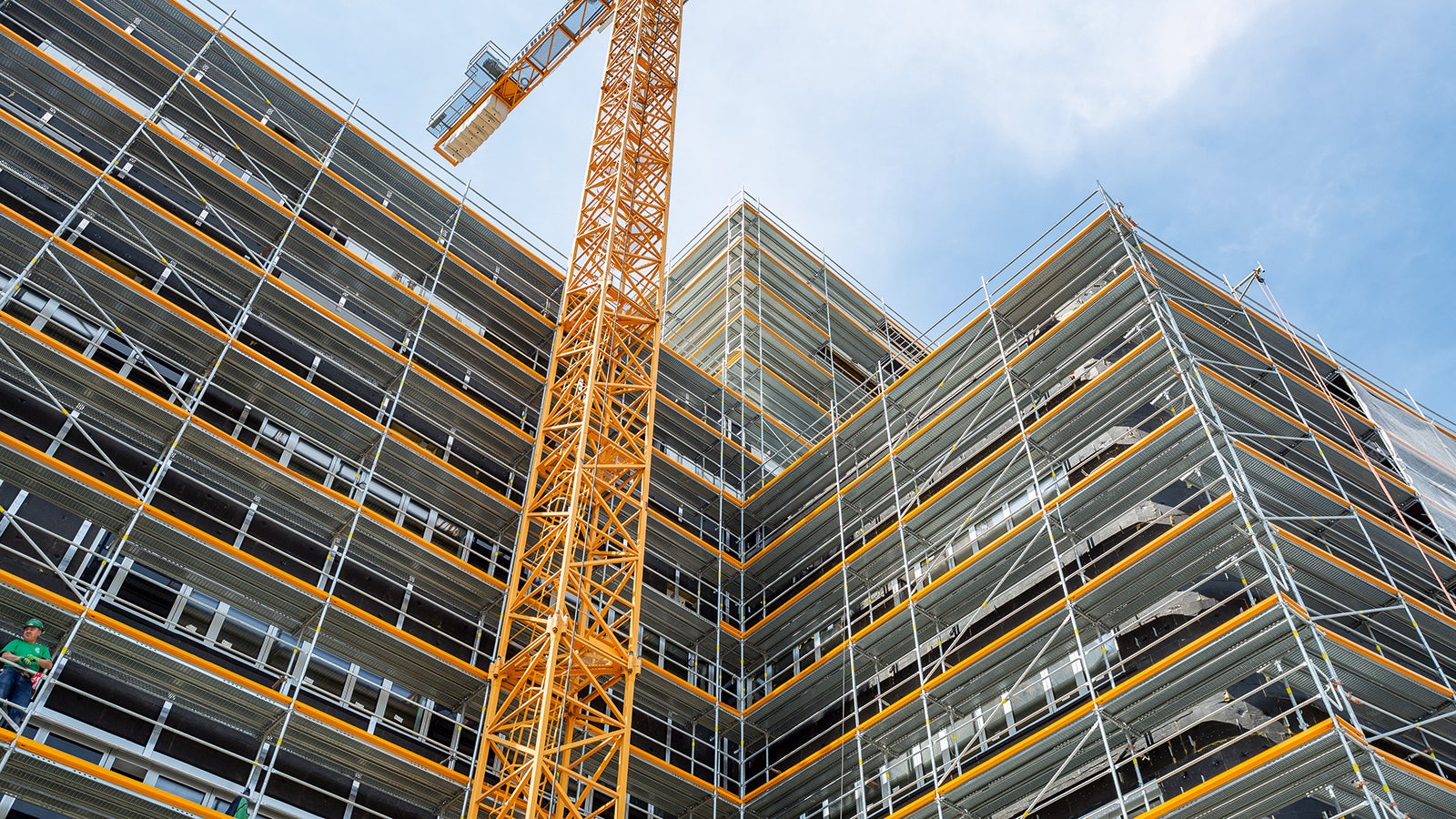 Un concept cuprinzător de schela pe baza sistemului PERI UP Easy Facade a fost dezvoltat împreună cu Schäfer Gerüstbau GmbH și PERI. Acest lucru a oferit schele de lucru și de siguranță de la cap la cap - asamblate în conformitate cu progresul construcției - pentru toate lucrările de construcție a clădirilor și a fațadelor. Un tunel pietonal a fost integrat în soluția de schelă care asigură o accesibilitate convenabilă, împreună cu un nivel înalt de siguranță pentru trecători pe parcursul întregii faze de construcție. De la inceputul structurii până la finalizare, ansamblul de schelă a putut fi menținut și nu a trebuit sa treaca prin modificari costisitoare sau cu un consum mare de forta munca. Toate ajustările necesare au fost efectuate cu ajutorul consolelor ușor de instalat.