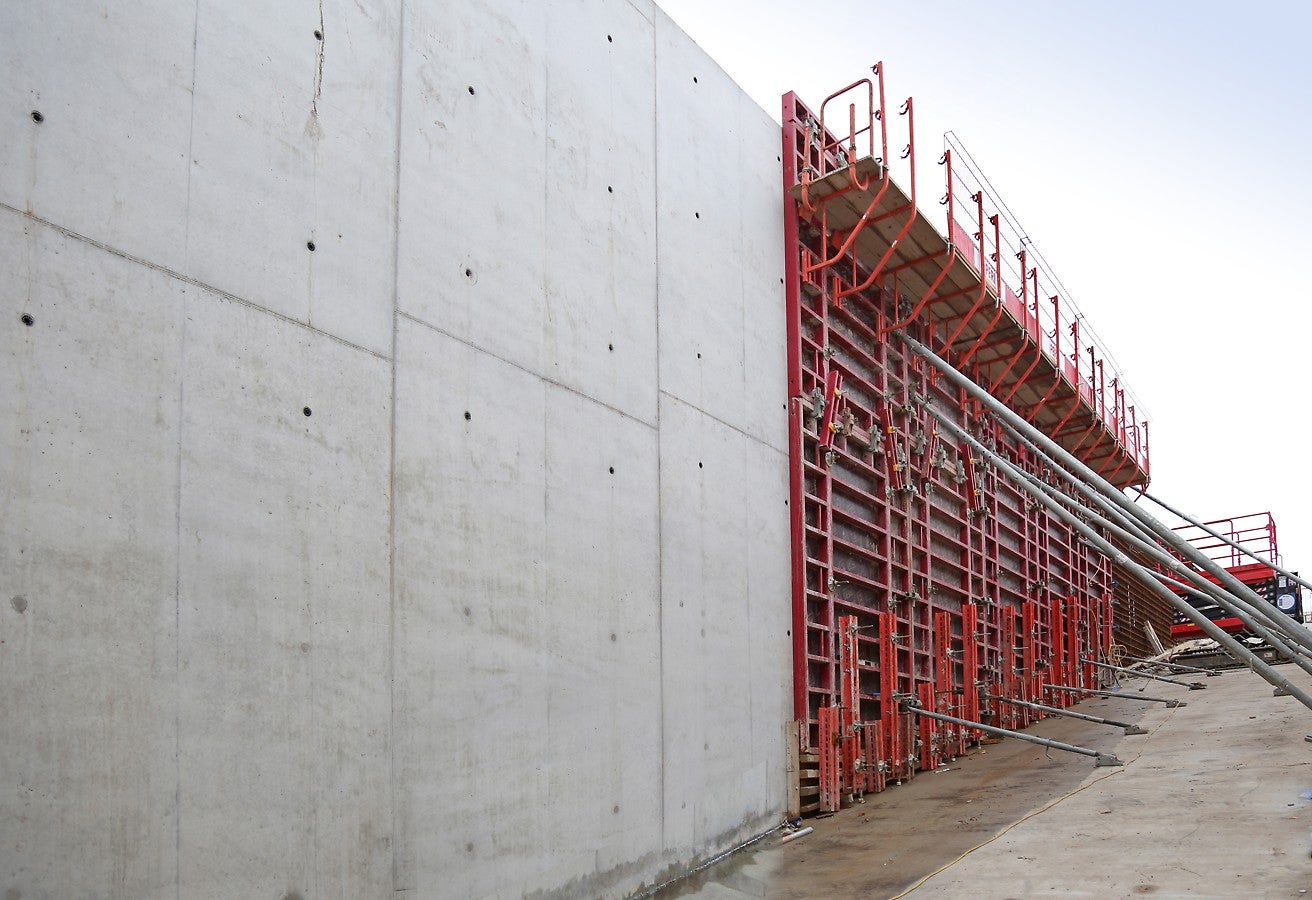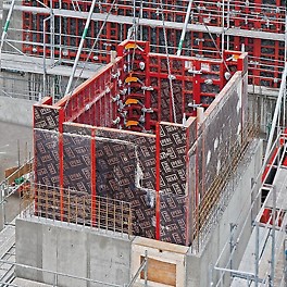 Cofrajul pentru pereți curbi RUNDFLEX, stâlpul circular din oțel SRS și cofrajul pentru panouri TRIO.