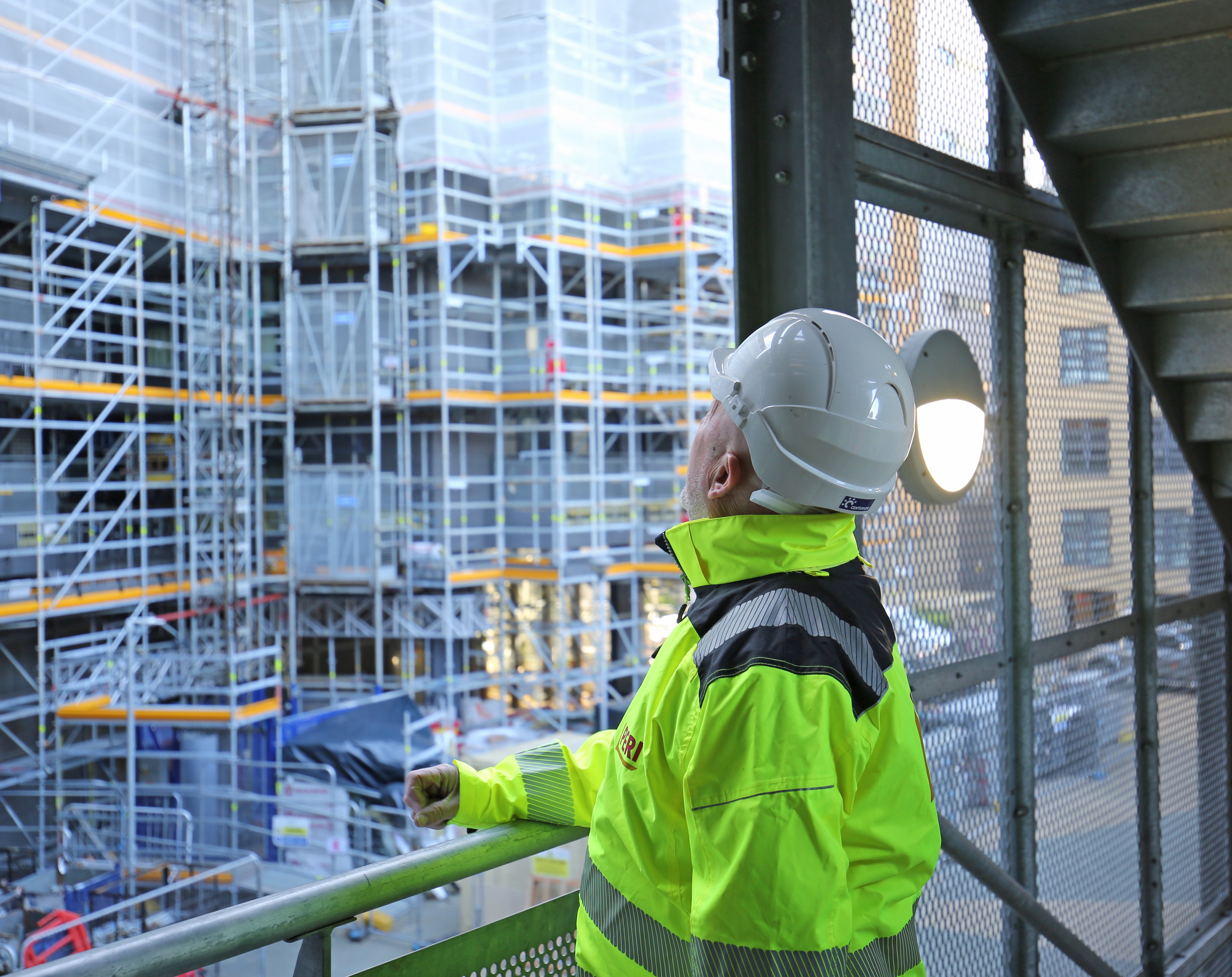 „Motivul pentru care am folosit sistemul PERI UP este că este cel mai versatil sistem existent. Dimensiunile diferite ale punților disponibile în gama PERI UP au fost benefice, deoarece am putut instala un aranjament al punților care să se potrivească cu forma clădirii. În plus față de punți, utilizarea unor componente precum consolele a însemnat că am putut să ne deplasăm în siguranță în jurul fiecărei părți a clădirii, acoperind toate golurile.”